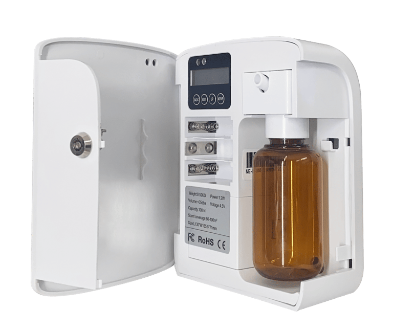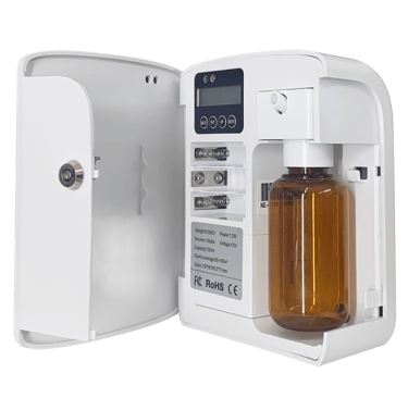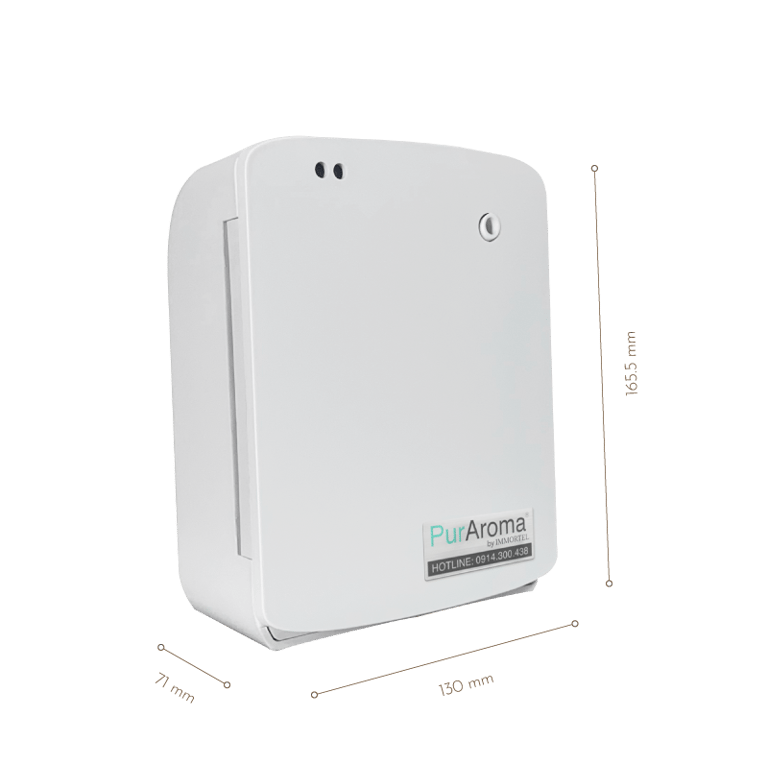 The PAB is designed to bring instant convenience to your living space. It operates on a 5V DC adapter or 6 AA batteries. The compact 0.5 kg diffuser is easy to move, place on a desk, or mount on a wall. Its two-fluid atomization technology disperses a subtle fragrance and effectively purifies the air.