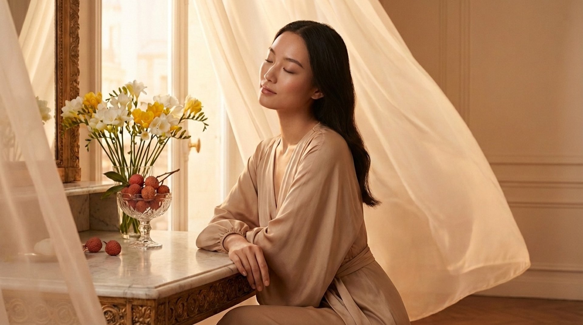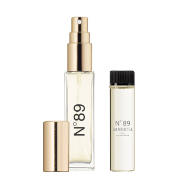 Elegant and refined, N°89 opens with the airy freshness of freesia and the juicy sweetness of lychee. The heart blooms with jasmine and magnolia, lightly spiced by ginger and white pepper. A sensual base of white musk and amber lingers softly, leaving a trail that feels like silk on bare skin. A fragrance of quiet allure and graceful femininity.